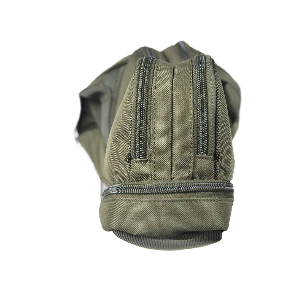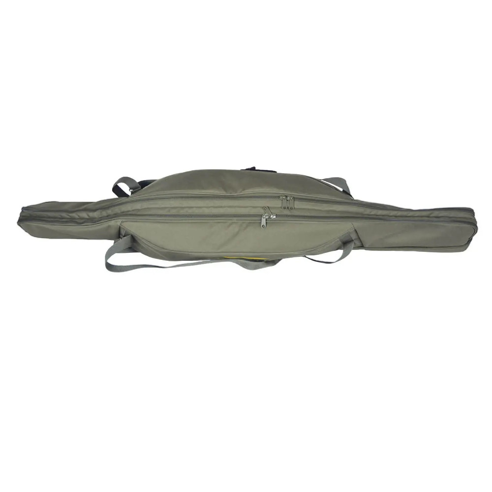 М’який чохол для 4-х трьохсекційних вудилищ з котушками до 6000. В кофра продуманий розмір та 3 відділення, щоб розмістити риболовне спорядження рибака по окремих відсіках залежно від виду та призначення. Таким чином, риболов зможе швидко знайти і дістати потрібні снасті на рибалці. У верхній частині чохла є 2 секції для зберігання фідерних вудилищ з котушками 5000-6000. Вудочки кладуться по 2шт в кожне відділення, додатково фіксуючись стрічками на липучках. Між собою секції розділені м’якою перегородкою з пінополіетилену, щоб вудилища залишалися неушкодженими під час транспортування. З двох сторін до перегородки пришиті невеличкі кишені для дрібних аксесуарів чи ручок від котушок. Стінки чохла ущільнені прокладкою із пінополіетилену, щоб захистити карпові вудилища і котушки від механічних ударів. З середини пришита міцна підкладка з поліестеру D300. Це зносостійкий матеріал, розрахований на часте використання і об’ємні речі. Всі шви зроблені армованими нитками, які витримують велику вагу.